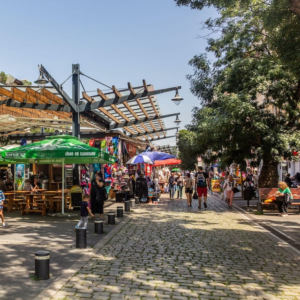 Vitosha Boulevard es el corazón comercial y social de Sofía. Esta extensa avenida conecta el Palacio Nacional de la Cultura con la plaza Sveta Nedelya, y en su recorrido se mezclan tiendas de marcas internacionales, boutiques locales, cafés y restaurantes. Es un espacio que vibra a todas horas del día: por la mañana con los desayunos al aire libre, al mediodía con los almuerzos ejecutivos, y por la noche con cenas animadas y terrazas llenas. Uno de los imperdibles es el restaurante Shtastlivetsa, que recrea la atmósfera acogedora de una casa de los años 30, con una carta inspirada en la cocina búlgara tradicional. Pasear por esta avenida es entender el día a día de los sofianos.