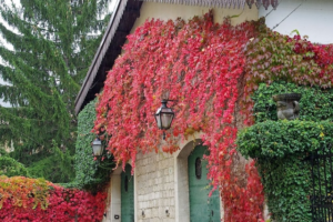 La parra virgen o Parthenocissus quinquefolia es una excelente elección para quienes buscan una planta trepadora que brinde una explosión de color. Su follaje cambia de verde a tonos rojos y púrpuras en otoño, creando un espectáculo visual en la fachada. Esta planta se adhiere fácilmente a los muros, sin necesidad de soporte adicional. Es resistente a diversas condiciones y se adapta tanto a sol como a sombra parcial. Necesita riego moderado, especialmente en épocas secas, y una poda ocasional para mantener su crecimiento controlado.