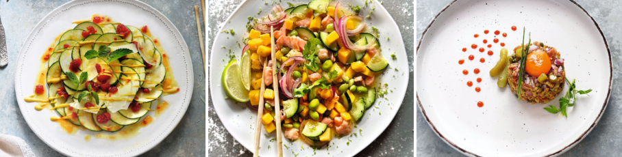 Estas recetas no solo resultan ideales para una cena ligera o un almuerzo rápido, sino que también pueden presentarse en reuniones informales o picoteos entre amigos. Cada una tiene un carácter distinto: el carpaccio de calabacín es delicado y refrescante, el ceviche aporta un toque exótico con su acidez y dulzura equilibrada, y el tartar de fuet ofrece una versión moderna del clásico plato de carne cruda.