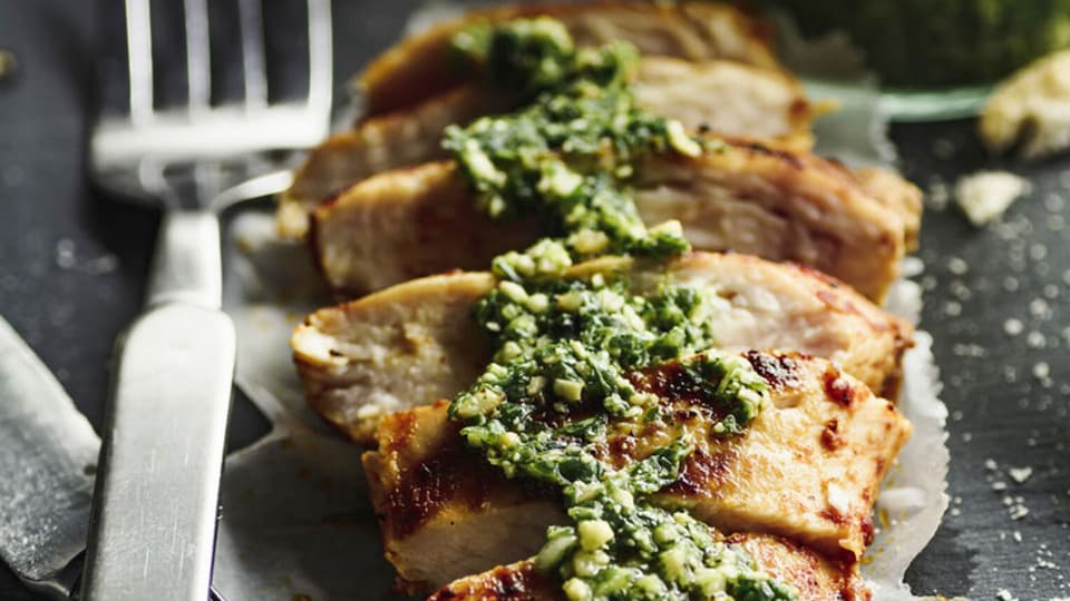 Pechuga de pollo a la parrilla con salsa de ajo y perejil