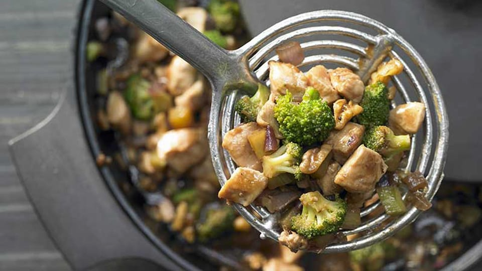 Un plato rápido y lleno de sabor, ideal para quienes disfrutan de los salteados orientales. El contraste entre el pollo, las nueces y la salsa de soja lo hace muy apetecible.