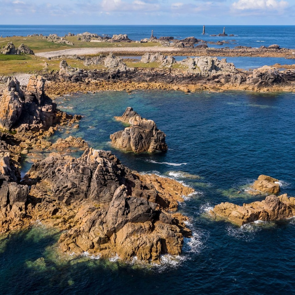 Más alejada y salvaje se encuentra Ouessant, considerada el último punto francés antes de lanzarse hacia el Atlántico. Su pertenencia al Parque Natural Regional de Armórica y al Parque Marino del Mar de Iroise explica su riqueza natural. Aquí conviven prados, brezales, valles verdes y abruptos acantilados.