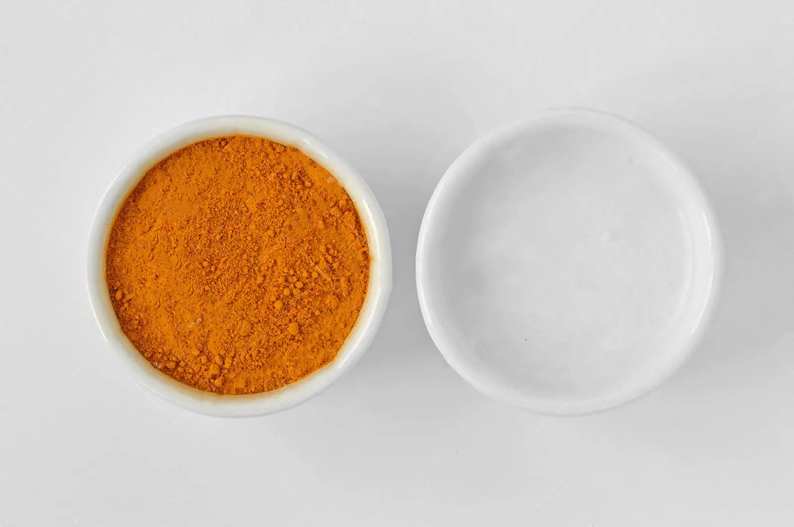 1. Mezcla una cucharada de aceite de coco (que esté en estado líquido si hace calor) con media cucharadita de cúrcuma en polvo.