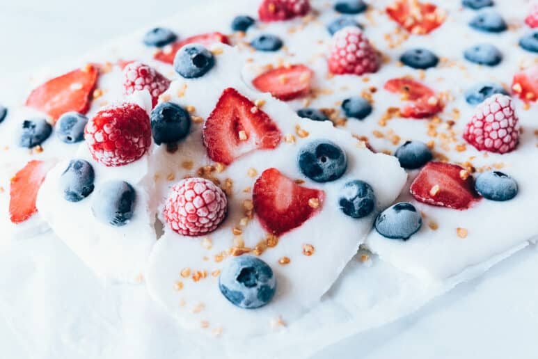 Tabletas de yogurt griego y frutos rojos