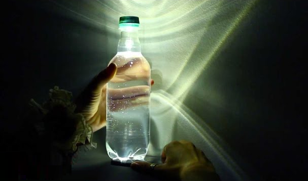 En caso de cortes de luz, recurrimos a las velas. Pero, ¿si no tenemos velas en ese momento? No pasa nada. Con los celulares todo el posible. O cualquier elemento parecido. Colocamos botellas con agua y por detrás el celular encendido. Tal y como se ve en la imagen.