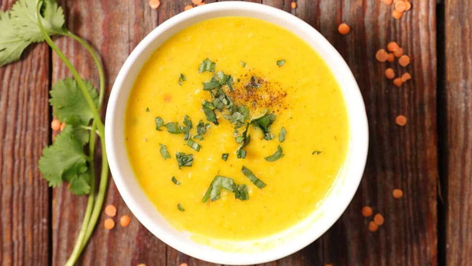 Crema de lentejas naranjas con cúrcuma