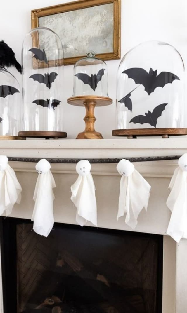 Esta guirnalda de fantasmas es una forma original de decorar ventanas y estanterías. Está hecha con bolitas de algodón envueltas en tela y suspendidas de una tira de nailon, lo que hace que los fantasmas parezcan flotar. Con esta manualidad, tendrás una decoración espeluznante y encantadora para tu hogar.