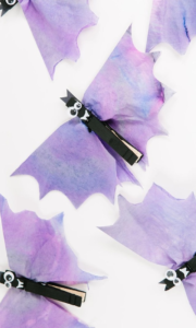 - Para el murciélago, corta alitas de cartulina o fieltro y pégalas en el pompón. ¡Listo! Ahora tienes figuras de Halloween adorables y peludas.