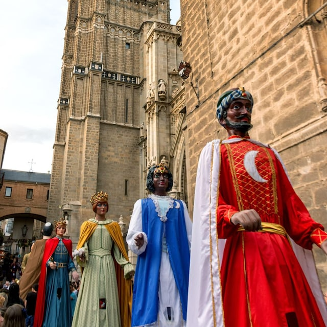 La Catedral Primada es el centro de la celebración. Allí se realiza una ofrenda floral en la Puerta de los Reyes, que se transforma en un original jardín vertical. Se cuelgan tapices flamencos, algunos basados en bocetos de Rubens, y se escuchan los cantos de los seises, niños seleccionados por sus voces privilegiadas. Gigantones, la Tarasca, bandas de música, conciertos y calles vestidas de mantones y reposteros completan una semana grande que es puro espectáculo para los sentidos.