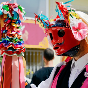 En la localidad manchega de Camuñas, el Corpus Christi se convierte en una representación teatral viva que mezcla danza, simbología y folclore. Los Danzantes, vestidos con trajes llamativos y sonajas, desfilan junto a los Pecados, personajes oscuros que encarnan los vicios humanos y que utilizan gritos, pólvora y máscaras grotescas para asustar y divertir.