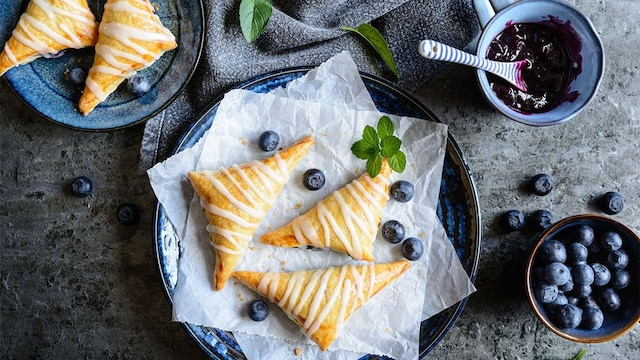 5. Hojaldres rellenos de confitura de arándanos y glaseado de limón