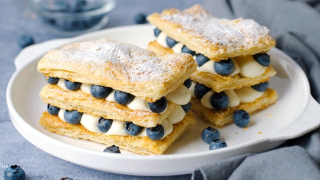 1. Milhojas de crema y arándanos