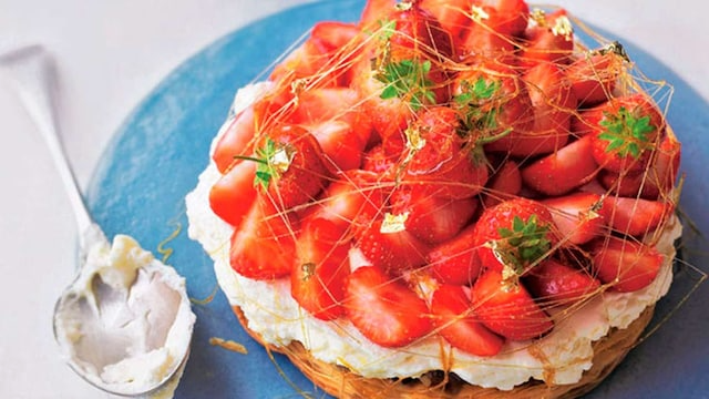 Una de las versiones más tradicionales y vistosas. Su base crujiente y su relleno cremoso combinan a la perfección con la frescura de las fresas.