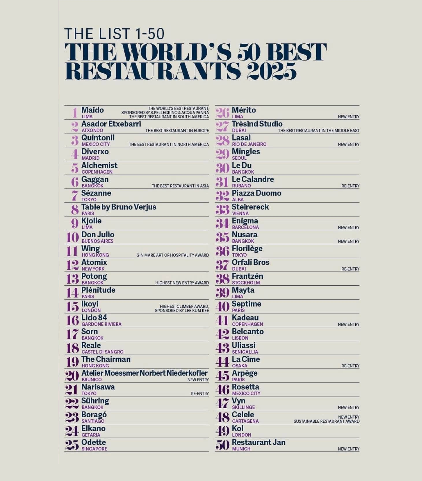 The World’s 50 Best Restaurants 2025: