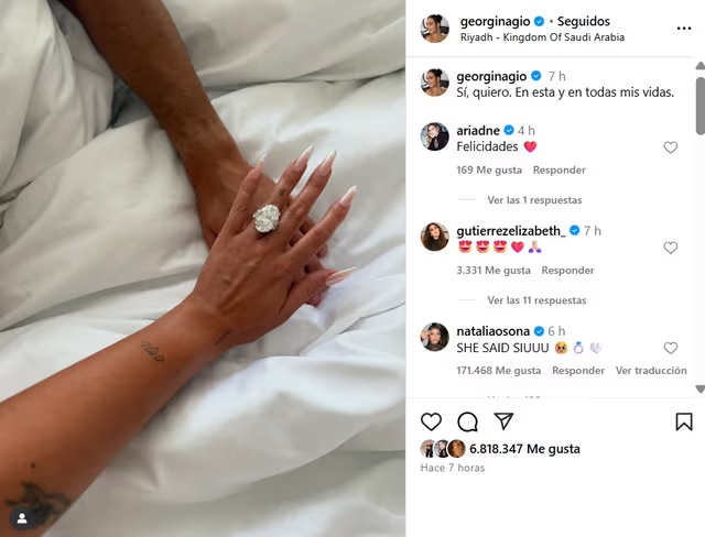 En una entrevista en 2019 con la revista ¡Hola!, Georgina había expresado su deseo de casarse con Cristiano. “Me encantaría. Ahora tenemos otras prioridades, pero en el futuro sería maravilloso convertirme en su esposa”, declaró la modelo, un deseo que hoy parece estar cerca de cumplirse con esta propuesta formal.