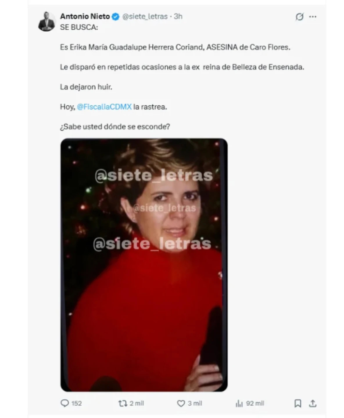 La investigación por la muerte de Carolina Flores Gómez, exreina de belleza originaria de Baja California, dio un nuevo paso en las últimas horas luego de que un juez de la Ciudad de México emitiera una orden de aprehensión contra Érika “N”, señalada como presunta responsable del hecho. La medida judicial se da en el marco de la causa iniciada por feminicidio, mientras las autoridades intensifican su búsqueda.