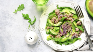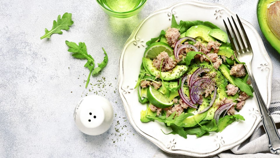 Ensalada de aguacate con atún y lima