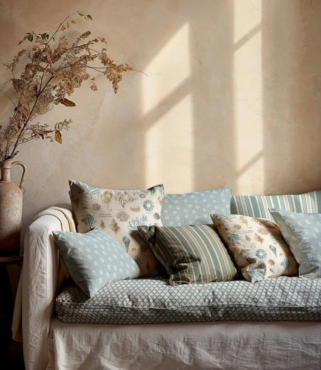 Lino, algodón, lana, yute… Los tejidos naturales no solo se ven bien, sino que aportan una sensación táctil muy placentera. En cortinas, cojines, alfombras, tapicerías o mantas, lo ideal es priorizar las texturas sobre los estampados. Eso sí, natural no significa aburrido: puedes jugar con rayas, tramas sutiles o incluso con estampados étnicos suaves que den personalidad sin saturar el espacio.