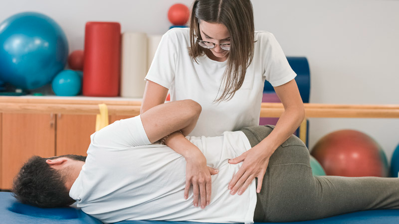 2. Fisioterapia: sesiones de masajes, estiramientos dirigidos y ejercicios de rehabilitación mejoran la postura y fortalecen los músculos.