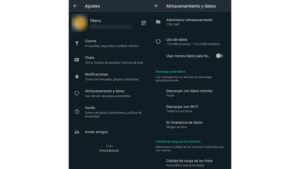 En Ajustes > Almacenamiento y datos > Calidad de carga de archivos, selecciona la opción Ahorro de datos. Esto asegura que las imágenes enviadas ocupen menos espacio.