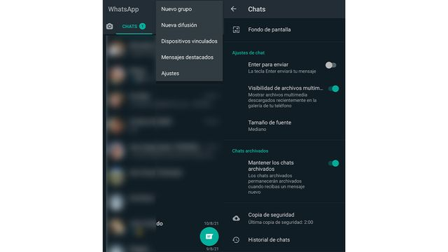 - Ve a Ajustes > Chats > Copia de seguridad.