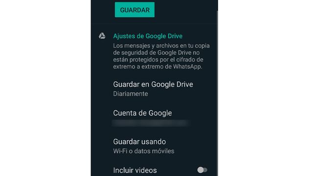 Los videos son los archivos más pesados en WhatsApp. Si deseas conservarlos en tu teléfono pero no en la copia, puedes desactivarlos: