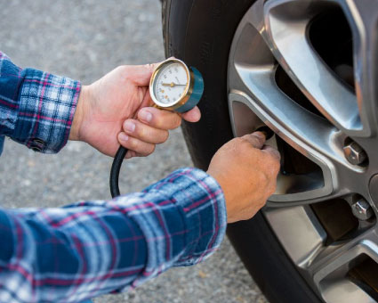Pueden comprarse un manómetro para medir la presión. Lo colocan en el pico de la goma y presionan hacia abajo. Inmediatamente van a ver un número o una varilla que se levanta, marcando cuánto es la presión de aire. Lo normal es que esté entre 28 y 32. Si se encuentra por debajo de esos números, les recomiendo que vayan a una gomería y la inflen un poco, hasta alcanzar esos valores. En caso contrario (si está por encima de esos números), deben bajar la presión.