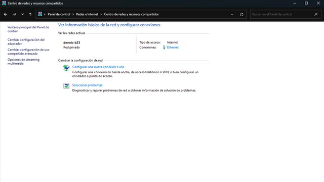 1. Accede al Centro de redes y recursos compartidos desde el Panel de control.