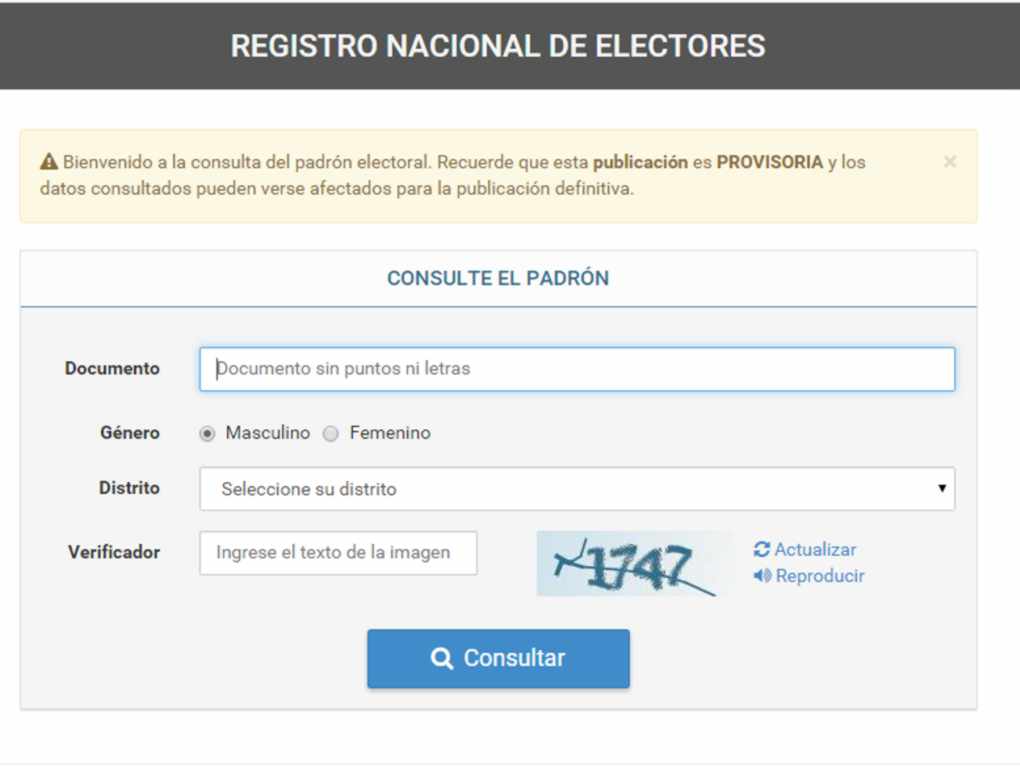 Gracias a las tecnologías en esta era de la comunicación es muy fácil consultar el padrón electoral. Ya no es necesario ir a alguna escuela para fijarse en las largas listas de gente para saber dónde votamos. Ahora, con nuestro número de documento y algunos clicks podremos saber esta información instantáneamente.