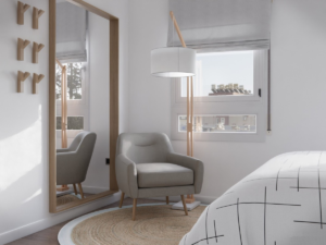 En dormitorios de tamaño reducido, la clave está en optimizar cada centímetro. Muebles modulares, soluciones a medida y piezas multifuncionales permiten crear ambientes prácticos y visualmente ligeros. Es fundamental cuidar la distribución: asegurarse de que los cajones se abren sin obstáculos, que puedes moverte con fluidez o que el armario se abre sin dificultad. Aprovechar la verticalidad con estanterías, elegir estructuras elevadas o utilizar colores claros también puede ayudar a ampliar la sensación espacial.