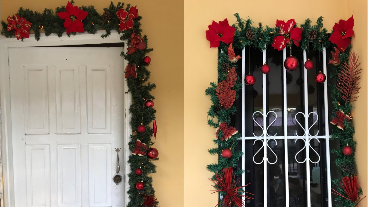 Las guirnaldas son elementos clásicos que suelen colocarse en chimeneas o escaleras, pero también funcionan de maravilla como un marco para tu puerta principal. El truco está en usar ganchos adhesivos que no dañen la pintura de tu puerta o, si es posible, instalar tornillos con argollas para asegurar mejor la guirnalda.