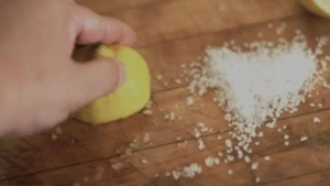 - Frotar con el limón. Cortá el limón por la mitad y utilízalo como si fuera un cepillo, presionando para que el jugo se mezcle con la sal. Esta combinación produce una especie de pasta natural que limpia, desinfecta y neutraliza olores. Frotá la superficie con movimientos circulares, prestando especial atención a las zonas donde se notan cortes o marcas.