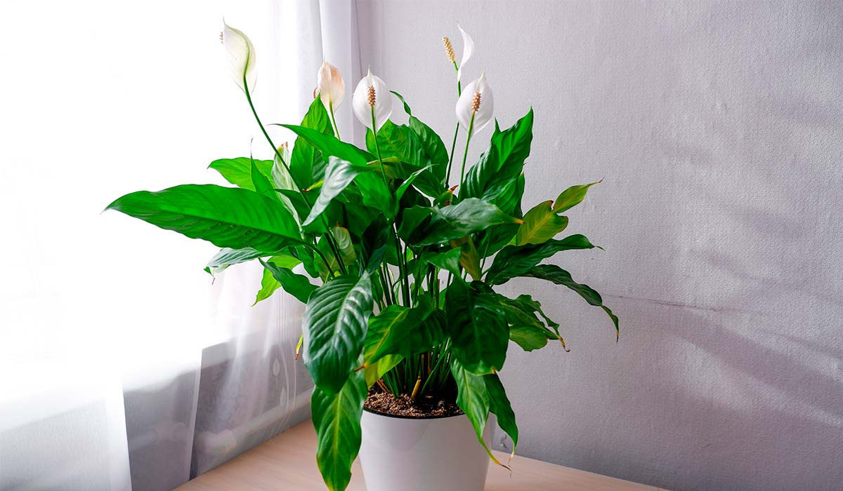 Esta planta es muy conocida por sus grandes hojas verdes y sus elegantes flores blancas. Es ideal para interiores con temperaturas suaves, ya que se desarrolla muy bien alrededor de los 20 °C. Requiere un riego regular, procurando que el sustrato esté siempre ligeramente húmedo. Además, es una de las plantas que mejor purifica el aire.