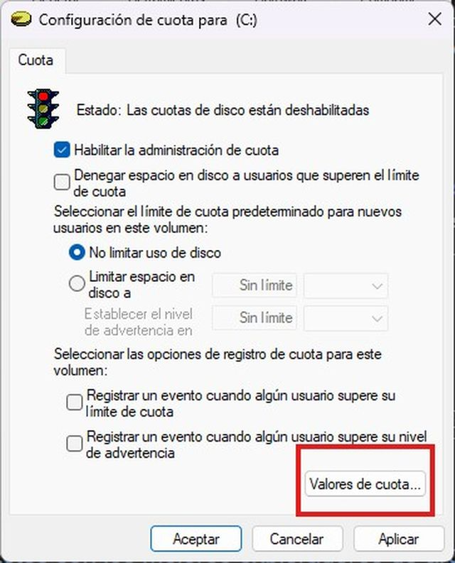 Con estos pasos, habrás configurado cuotas de almacenamiento personalizadas para cada cuenta en tu ordenador.