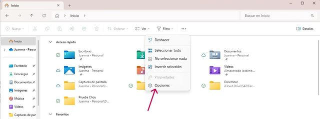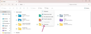 - Selecciona la opción Opciones. Esto abrirá la ventana de Opciones de carpeta.