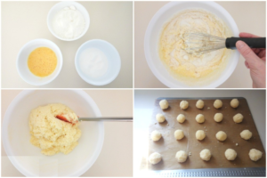 - Hacer bolitas con la masa y ponerlas, en una fuente enmantecada, en el horno. El horno que esté a 180°. Los dejan 10 minutos.