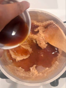 Incorporá el caldo de a poco, en un hilo fino, mientras mezclás sin parar. Al principio la mezcla se verá espesa, pero se irá soltando a medida que agregás más líquido. Este paso es clave para lograr una textura lisa.
