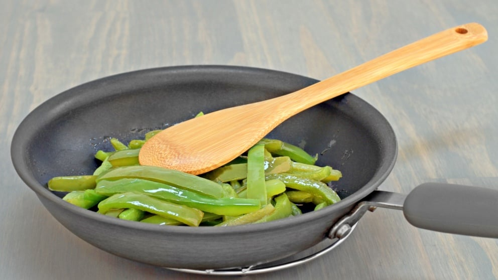 Primero que todo vamos a arrancar por los dos tipos de pimientos que ya están troceados. Los ponemos a freír a fuego moderado durante pocos minutos y luego agregamos la carne de cerdo picada y la dejamos dorar. Una vez que llevamos a cabo los pasos anteriores, es hora de poner el chorizo picado. Lo dejamos que se rehógue por varios minutos.
