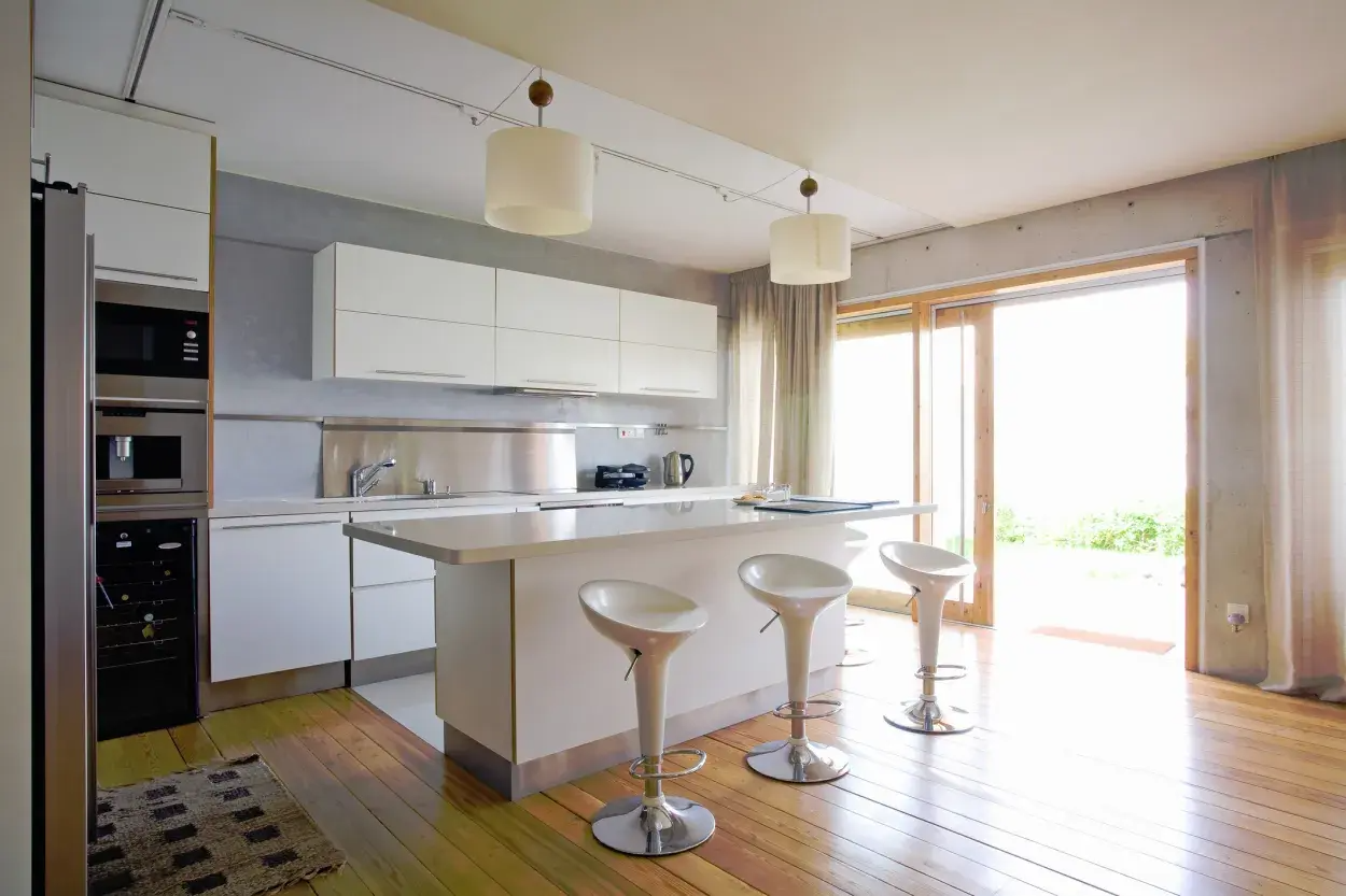 Planificar correctamente la distribución de las puertas y cajones en la cocina es otro aspecto fundamental. No solo es importante desde el punto de vista funcional, sino también visual. Una cocina bien modulada, es decir, con muebles de tamaños proporcionados y simétricos, ofrece una mayor sensación de orden. Este equilibrio es crucial para evitar el caos visual y generar un ambiente de paz y serenidad. Además, una distribución lógica facilita la construcción de los muebles en términos de carpintería y mejora la experiencia de uso diaria.