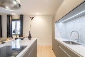 -el uso de iluminación adecuada: Las luces empotradas o las tiras LED debajo de las alacenas pueden ayudar a crear un ambiente más luminoso y abierto.