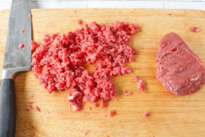 - Compra carne de confianza: busca un proveedor especializado o una carnicería gourmet. Coméntales que usarás la carne para steak tartar, así sabrán darte una pieza apta para consumo en crudo.
