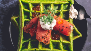 Wafles de espinacas con salmón
