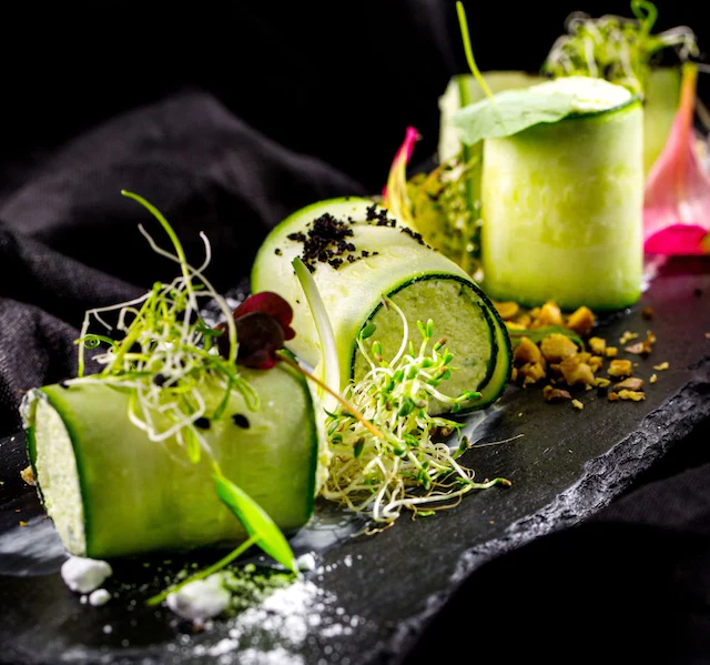Los rollitos de calabacín son una alternativa creativa para entradas o snacks. Para hacerlos, se cortan láminas finas a lo largo, que luego se rellenan y se enrollan. Si las tiras son lo suficientemente delgadas, pueden utilizarse en crudo sin problemas.