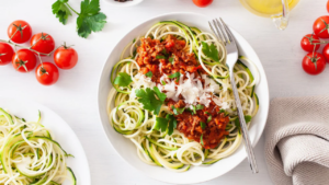 Una de las formas más populares de consumir calabacín crudo es a través de los llamados “zoodles”, o espaguetis vegetales. Para prepararlos, solo es necesario lavar bien el calabacín, secarlo y cortarlo en tiras finas. Aunque se puede usar un pelador, lo más práctico es un espiralizador, que permite obtener una forma similar a la pasta tradicional.