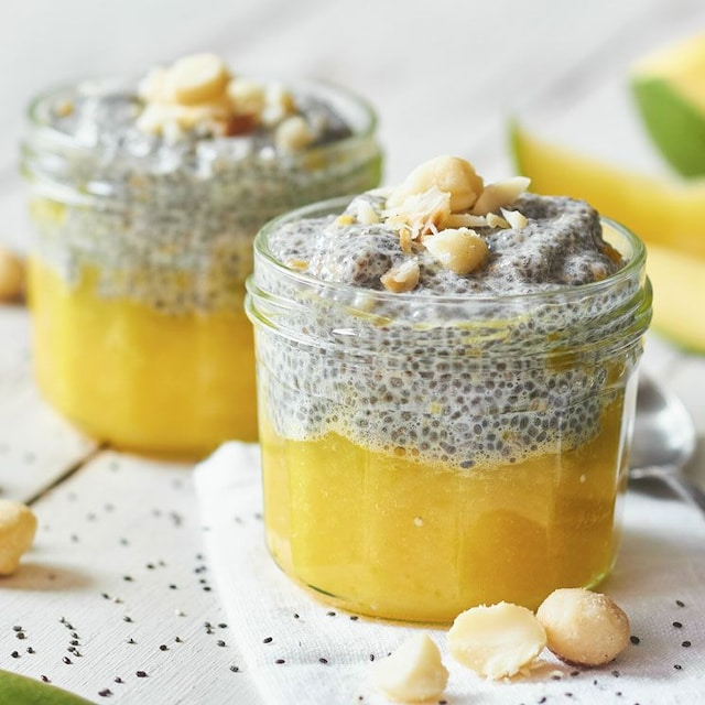 3. Con nueces de Macadamia: Pudin de chía y mango