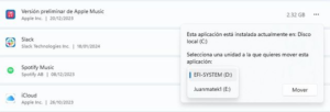 Importante: no todas las aplicaciones permiten ser trasladadas desde la Configuración. Especialmente aquellas que no provienen de la Microsoft Store o que requieren permisos especiales del sistema pueden no ofrecer esta opción. En esos casos, deberás utilizar el método avanzado.