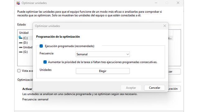 - En “Cambiar configuración”, elegí una frecuencia diaria para asegurar que el disco se mantenga limpio y ágil.