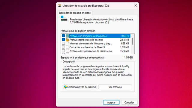 - Seleccioná los elementos que querés eliminar, como archivos temporales, restos de actualizaciones de Windows, contenido de la papelera de reciclaje o paquetes de controladores antiguos.