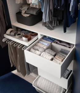 Las cajas divisoras son perfectas para organizar las prendas más pequeñas, como ropa interior, calcetines, pañuelos o incluso accesorios como relojes y joyas. Puedes encontrarlas en diferentes tamaños para que se ajusten a cada tipo de prenda, y muchas vienen con separaciones internas que mantienen cada artículo en su lugar.