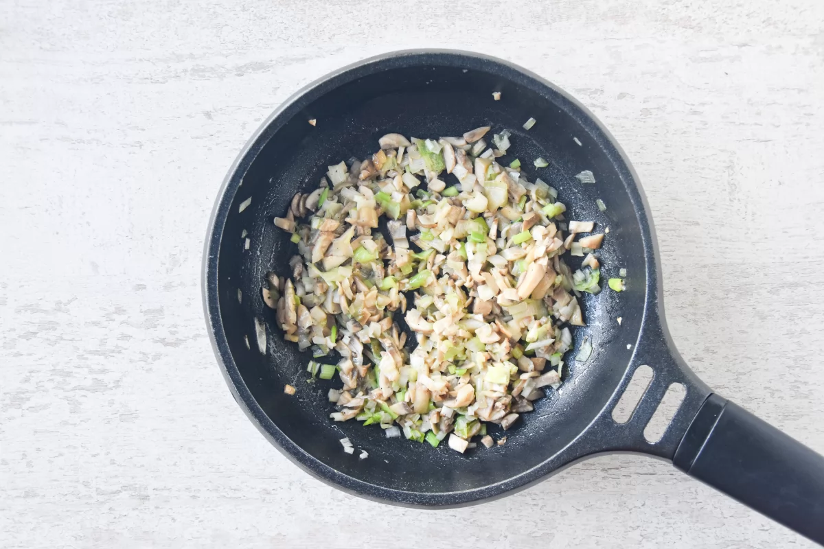 En esta versión, el relleno se prepara con ingredientes sencillos y accesibles como champiñones, cebolletas y queso mozzarella, logrando una combinación cremosa y llena de sabor. El toque de orégano aporta un aroma especial, aunque también podés experimentar con otras hierbas según tu gusto.